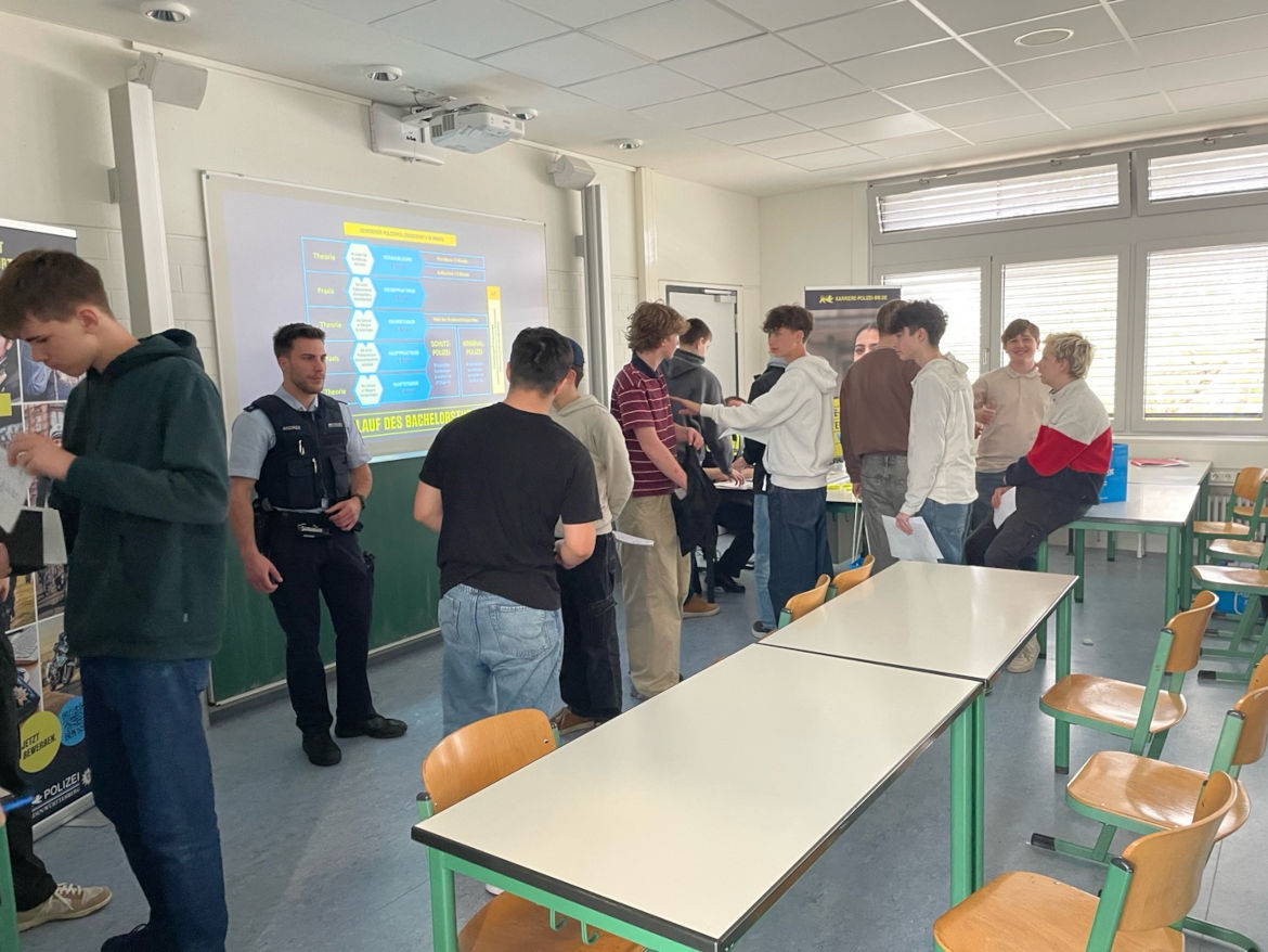 Die Vertreter des Polizeipräsidiums Reutlingen stellten die Ausbildungs- und Studienmöglichkeiten bei der Polizei Baden-Württemberg vor. Die Agentur für Arbeit informierte rund um Bewerbungen an Universitäten und Fachhochschulen, Studienfinanzierung/BAföG sowie Auslandssemester und Auslandsstudium. Die Ausbildungs- & Studienbotschafter standen für Fragen zu Ausbildungsberufen und dem Studium allgemein bereit.