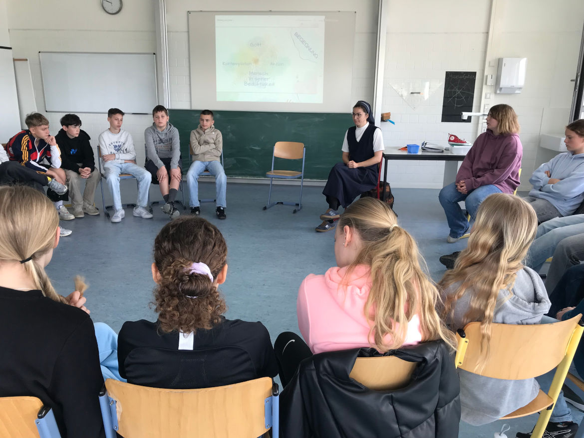 Ein Leben im Glauben, ein Leben vielleicht sogar im Kloster – geht das heute überhaupt noch? Wer macht denn noch sowas? Dass das gar nicht so verstaubt und altmodisch sein muss, konnten die Schülerinnern und Schüler der katholischen Religionsklasse 7 heute hautnah erleben!