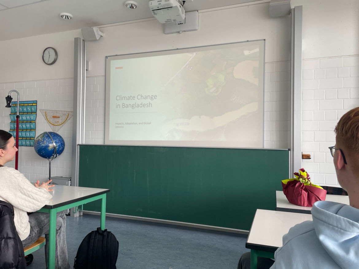 Am 26. März 2026 begrüßte das Otto-Hahn-Gymnasium einen besonderen Gast: Einen wissenschaftlichen Mitarbeiter der Universität Stuttgart, der in der Kursstufe 2 des Leistungsfachs Geographie einen Vortrag zum Thema „Climate Change in Bangladesh – Impacts, Adaptation, and Global Lessons“ hielt. Der Vortrag fand auf Englisch statt und bot unseren Schülerinnen und Schülern fachlich fundierte Einblicke in eines der weltweit am stärksten vom Klimawandel betroffenen Länder.