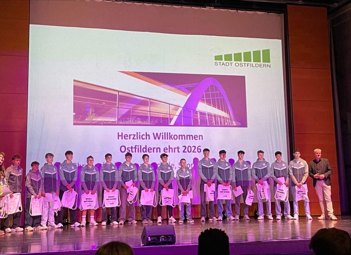 Am vergangenen Freitag, 20.03.2026, lud die Stadt Ostfildern zur jährlichen Ehrung ein, um erfolgreiche Schülerinnen und Schüler sowie Sportlerinnen und Sportler aus Ostfildern für ihre Leistungen im Jahr 2025 zu ehren. Auch das OHG war in diesem Jahr wieder mit zahlreichen Schülerinnen und Schülern vertreten.
